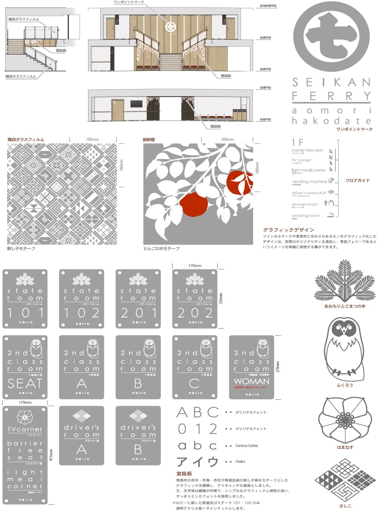 2023年4月4日に就航した「はやぶさII」の船内デザインコンセプトを函館市にゆかりのあるモノとし、今般の新造船「はやぶさIII」は、青森市にゆかりのあるモノ(刺し子やりんごの木をモチーフ)をグラフィック化したデザインとしており、空間のオリジナリティを演出し、青森~函館を結ぶ青函フェリーの商号イメージを明確に表現しております。