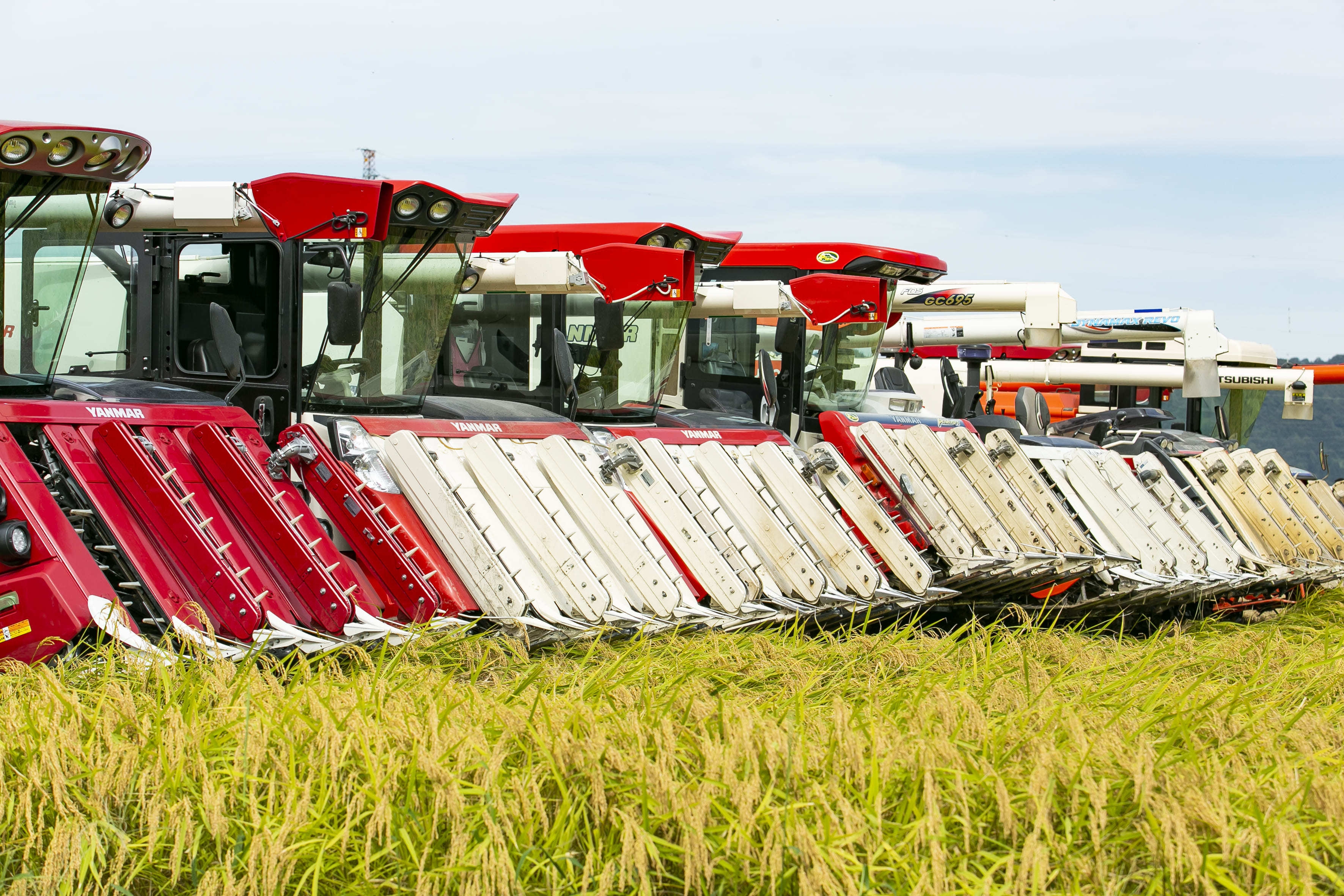 20台のコンバインで一斉に稲刈りをする風景はインパクト大。必見です。