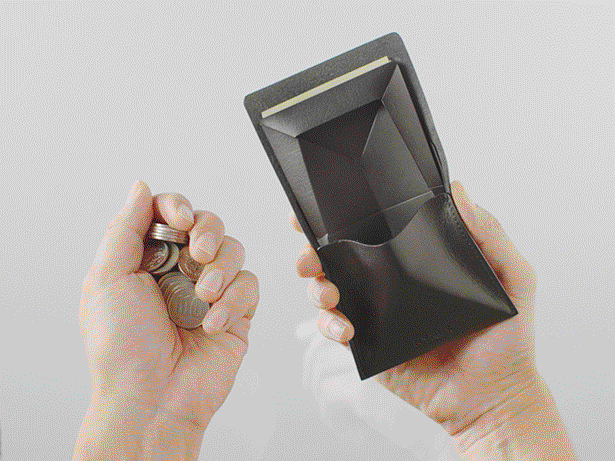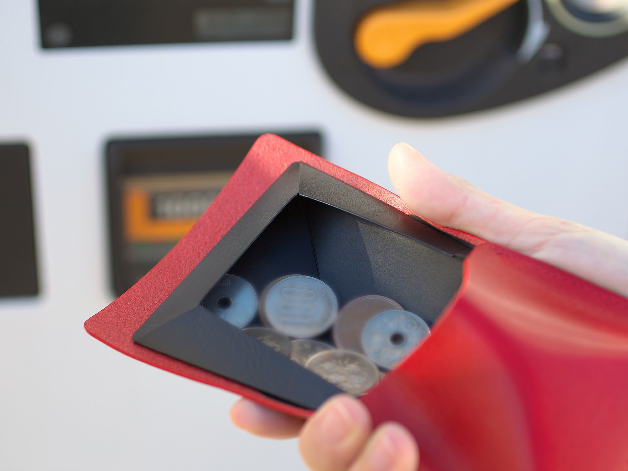 スマートフォンが普及して、キャッシュレス化やものを持たないミニマリストのような新しいライフスタイルが生まれてきましたが、まだ無くすことができない現金を毎日快適に持ち歩くために、新しいお財布のカタチを一から考えました。薄さと軽さだけでなく、素早く支払いを済ませられるという財布としての大切な機能性を追求しています。財布を開く、小銭を選ぶ、札を出す、お釣りを入れる、それぞれの動作をいかに素早く簡単にできるかを考え抜いて、ユニークなアクションを持つFLIP UP機構が生まれました。