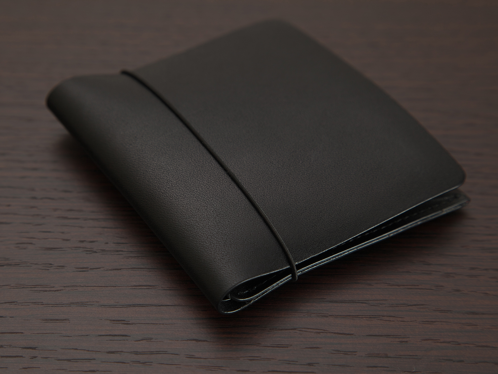 紙幣は折りたたまずに入れられます。半分露出した状態なので、会計に必要な枚数をペラペラと数えて、そのままスッと取り出せます。ゴム紐で閉じた状態のままでもカードとお札はアクセスが可能で、お札はそのまま引き抜くこともできます。