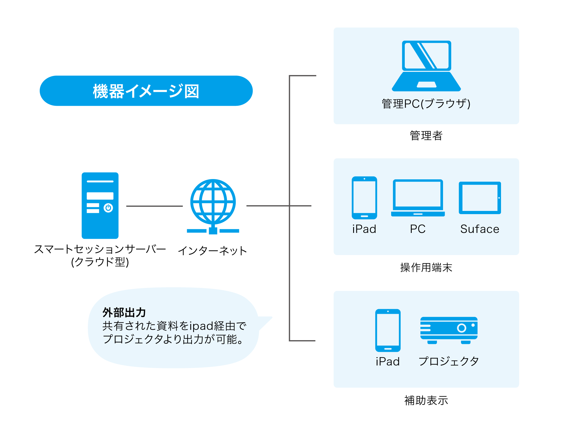 「スマートセッション」は、タブレットやPCに対応したハイブリットなペーパーレス会議システムです。