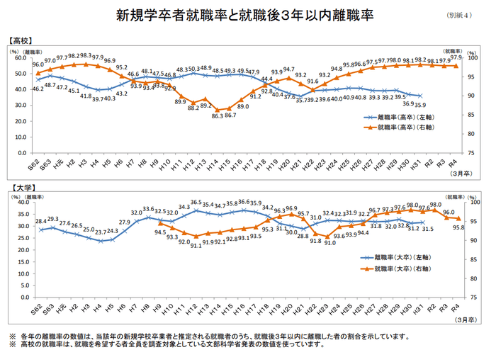 厚生労働省の調査によれば、新卒社員の3割以上が、3年以内に離職しています。