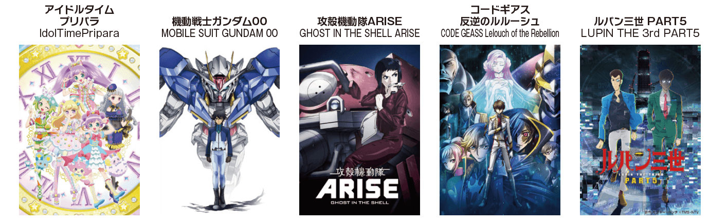 アイドルタイムプリパラ/機動戦士ガンダム00/攻殻機動隊ARISE/コードギアス 反逆のルルーシュ/ルパン三世 PART5