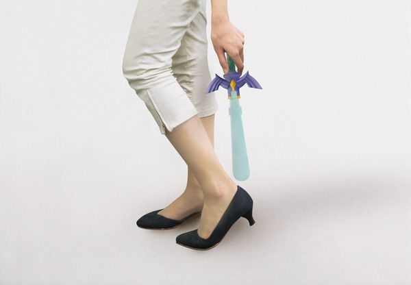 付属の台から靴べらを抜くと、マスターソードを抜いた時のサウンドが流れます。