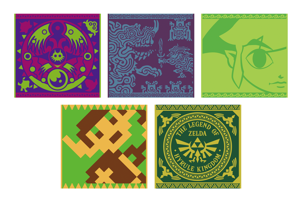 歴代の『ゼルダの伝説』シリーズに登場するキャラクターなどをデザインしたハンドタオルです。