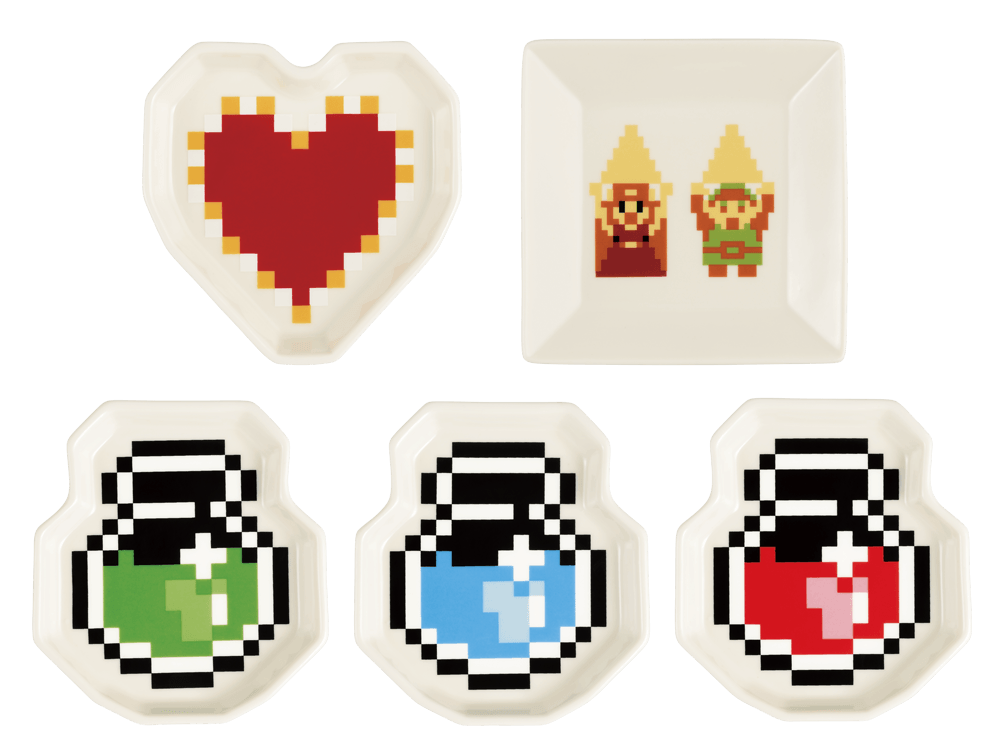 ハートやクスリ瓶など、ゲーム内のアイコンをドットでデザインした小皿です。