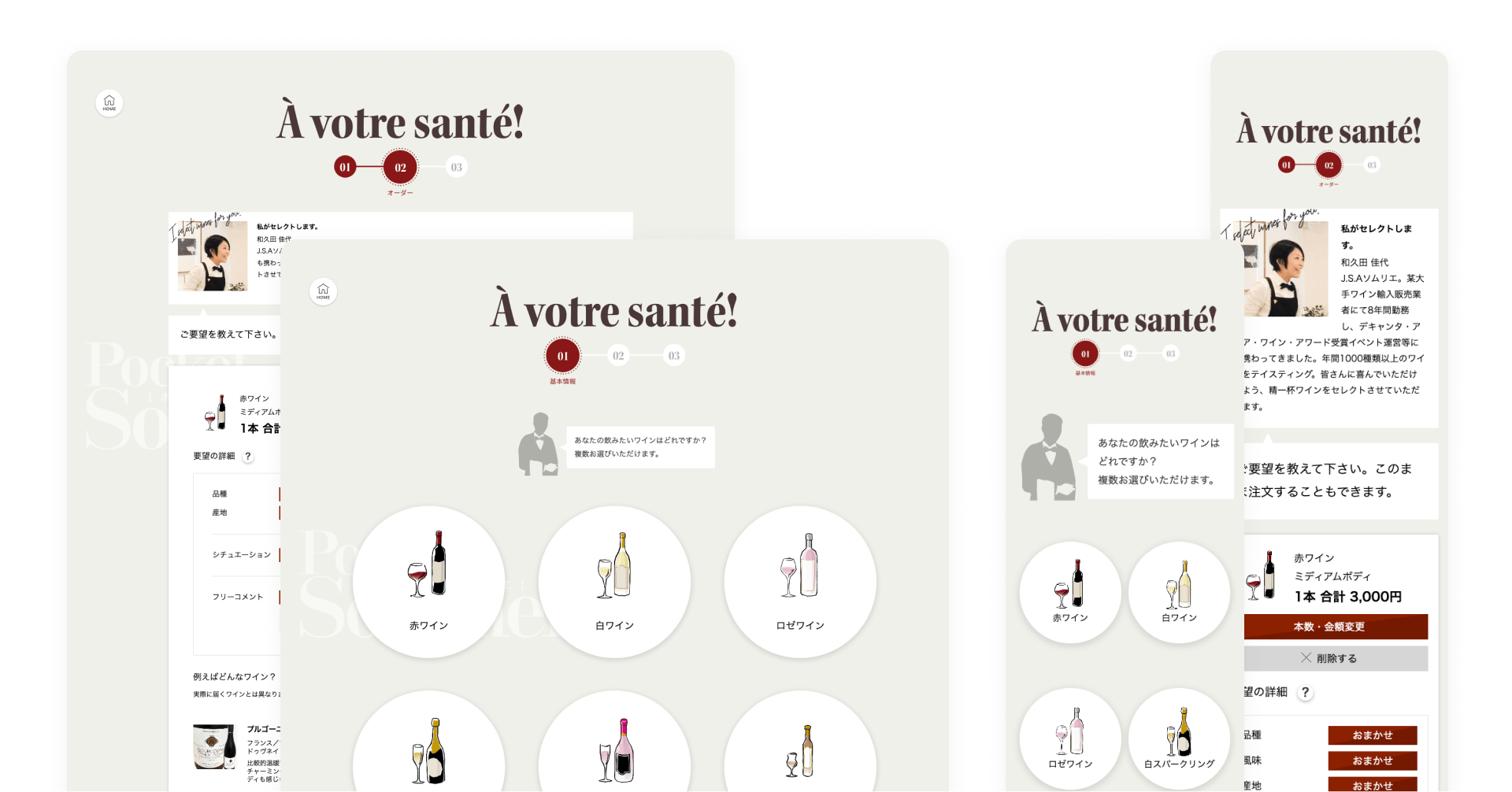そうした方でも、Pocket Sommelierをご利用いただくことで、レストランやワインショップに外出することなく、自宅から簡単にワインを購入し、お楽しみいただくことができます。