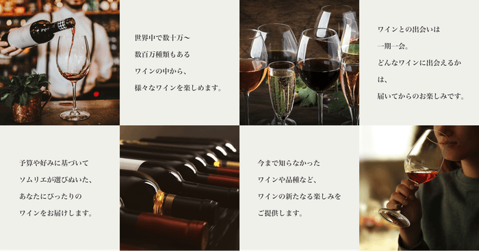 「おまかせ」でワインをソムリエに選んでもらうこともでき、お届けするワインに関してのソムリエからの丁寧なメッセージ(そのワインがどのような特徴を持つか、どのような料理と合わせると良いか、また飲むときのおすすめの温度などについて)もついておりますので、ワインに詳しくない方でも、自分の好みや状況に合った美味しいワインを自宅などで楽しむことができます。