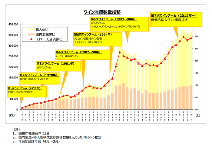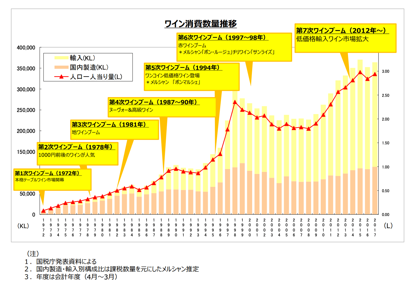 ワイン参考資料 メルシャン株式会社 「ワイン消費数量推移」