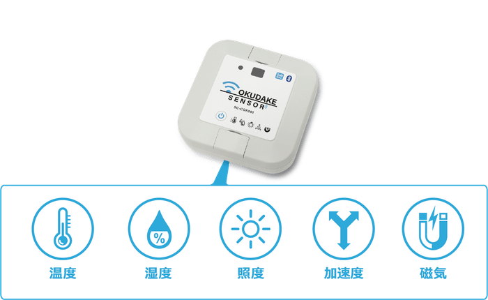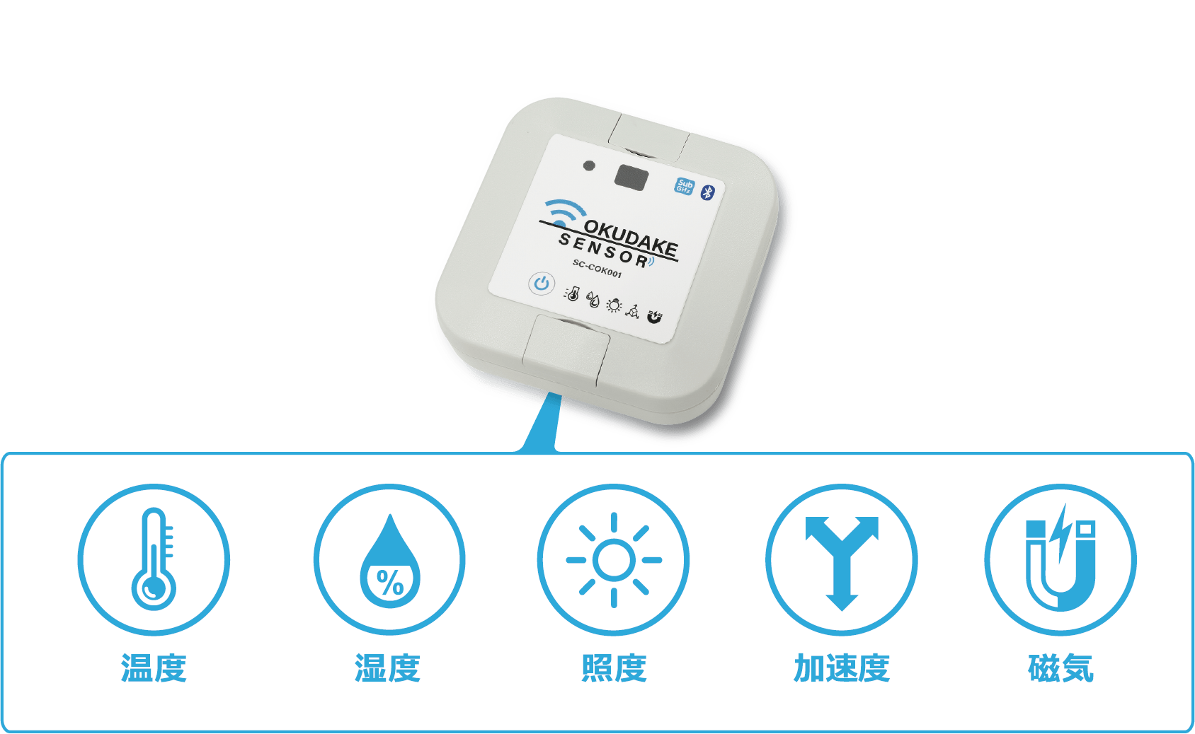 ●温度・湿度・照度・加速度・磁気の5種類のセンシングが可能!
