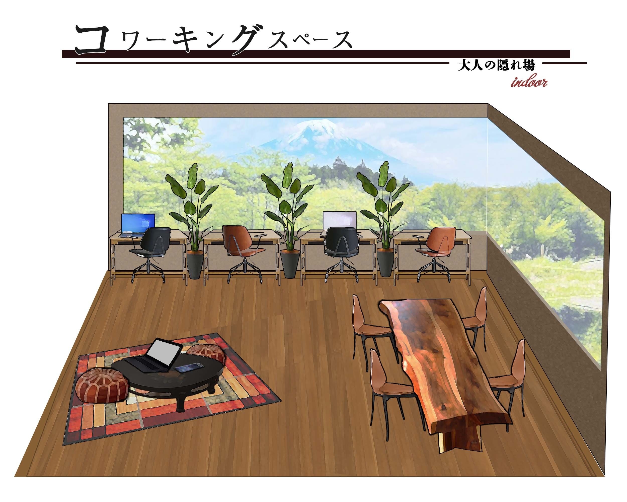 小さなお子様のいるファミリーに利用してもらいたい「小上がり畳スペース」、パソコン・インターネットの利用が可能な「ワーケーションスペース」、キャンプ好きが集まりお酒を交わす「囲炉裏バースペース」などを展開予定です。