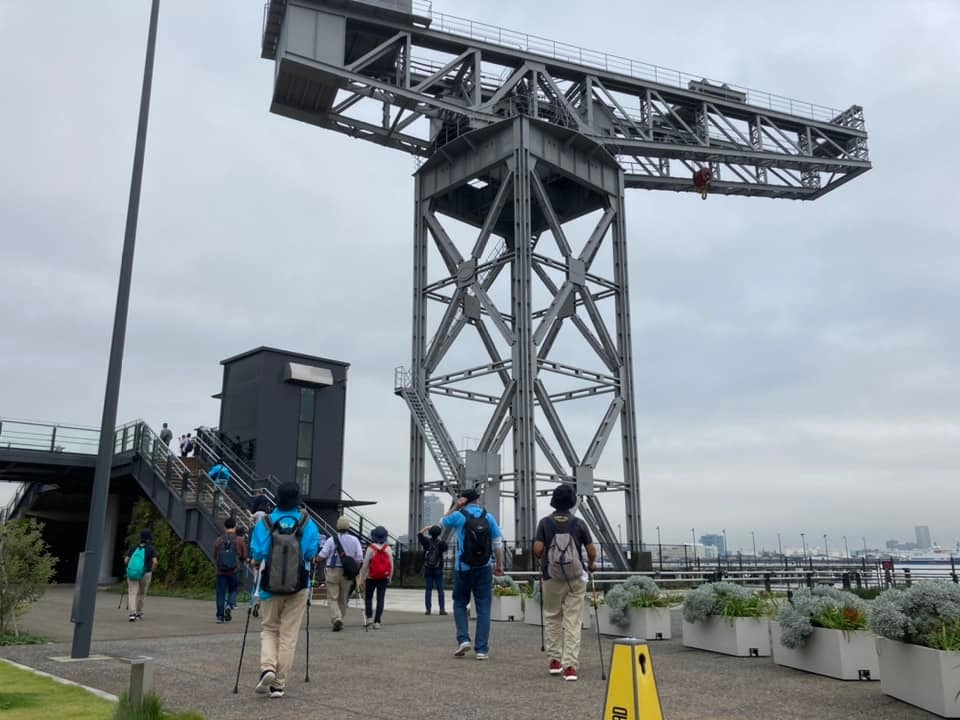 横浜・大さん橋ふ頭ビルに集合し、血圧&脈拍測定。ガイダンスを受けた後にストレッチを行い、ウォーキングを開始します。