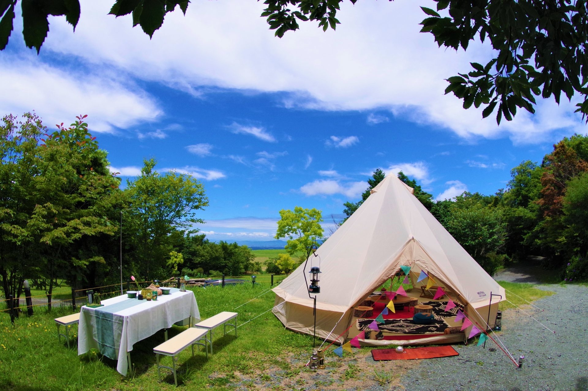 御船町の吉無田高原でキャンプやバーベキュー、グランピング体験ができる「野あそび企画」による、アウトドア体験ディスプレイと自然の素材で作るモノづくり体験ワークショップも実施します。