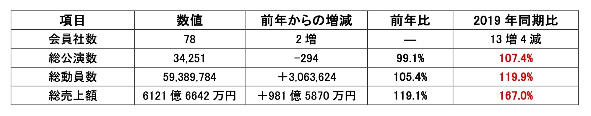 2024年1月~12月分のライブ・エンタテインメント市場データを コンサートプロモーターズ協会が発表。 動員数は前年比105%、市場規模は前年比119%に拡大