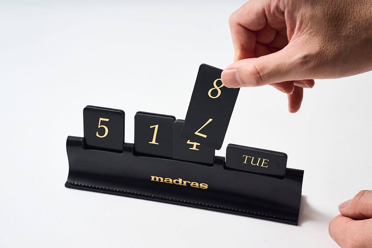 「お店の雰囲気をいつもよりリッチに出来る、革製の卓上カレンダーです。