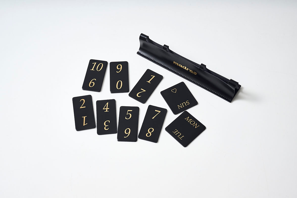 ・月、日付、曜日パーツを土台の穴にセットし、毎日パーツを入れ替えて使用します。