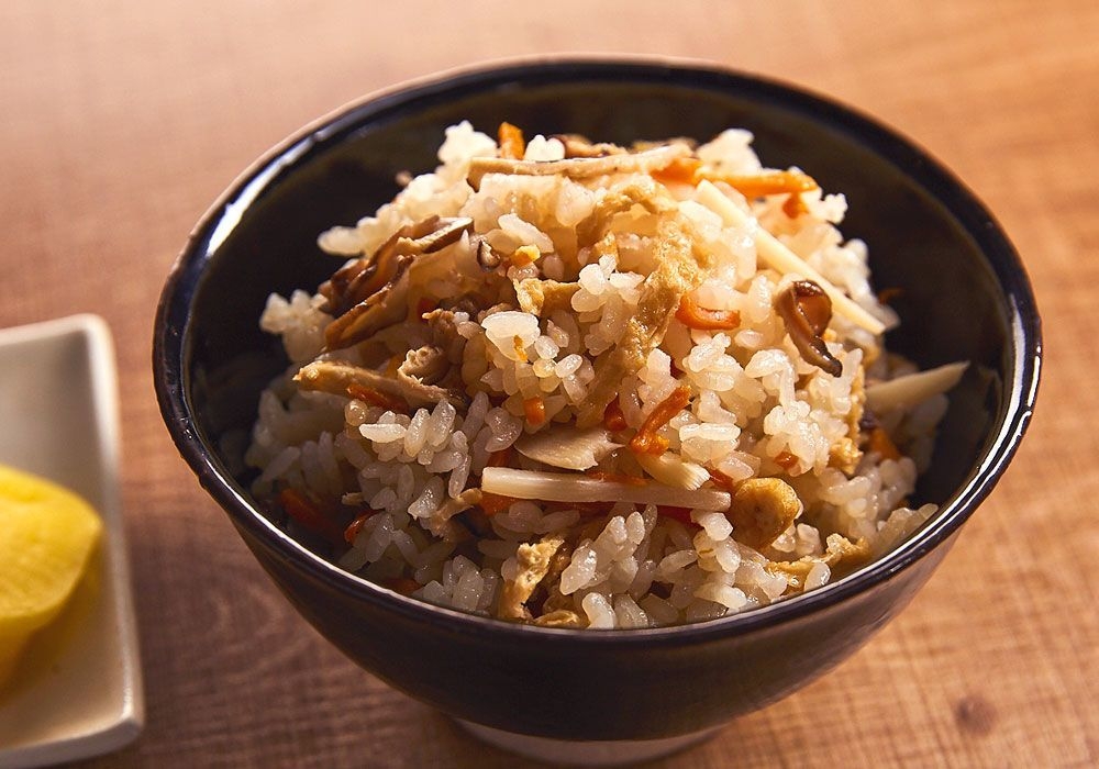 だし屋ならではの、国産のかつおぶし、こんぶエキス、かつお節エキス、こんぶ、にぼし、にぼしエキス、さばぶし、しいたけといった和だしを合わせて作った、お出汁たっぷり、うまみたっぷりの炊き込みご飯です。国産の人参、たけのこ、ごぼう、しいたけ、油揚げの5品目の具材がたっぷり入っているので、不足しがちな野菜もしっかり摂れ、食べ応えもあります。野菜の歯ごたえも相まって、シンプルながらも奥深くてやさしい味わいを楽しませてくれます。