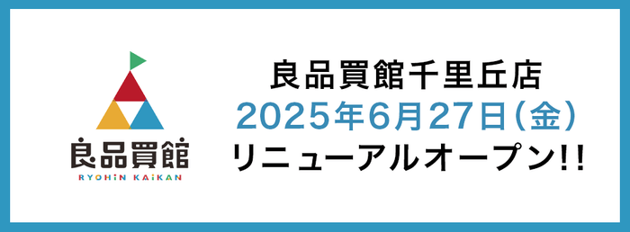 株式会社買取王国(本社:愛知県名古屋市、代表取締役会長:長谷川和夫、代表取締役社長:嶋本匡能、以下買取王国)は、東海地方を中心にリユースショップの店舗展開を行っています。大阪・奈良・兵庫を中心に店舗展開している大型総合リサイクル/リユースショップの「良品買館」も運営しております。このたび、2025年6月27日(金)に「良品買館千里丘店」がリニューアルオープンいたします。