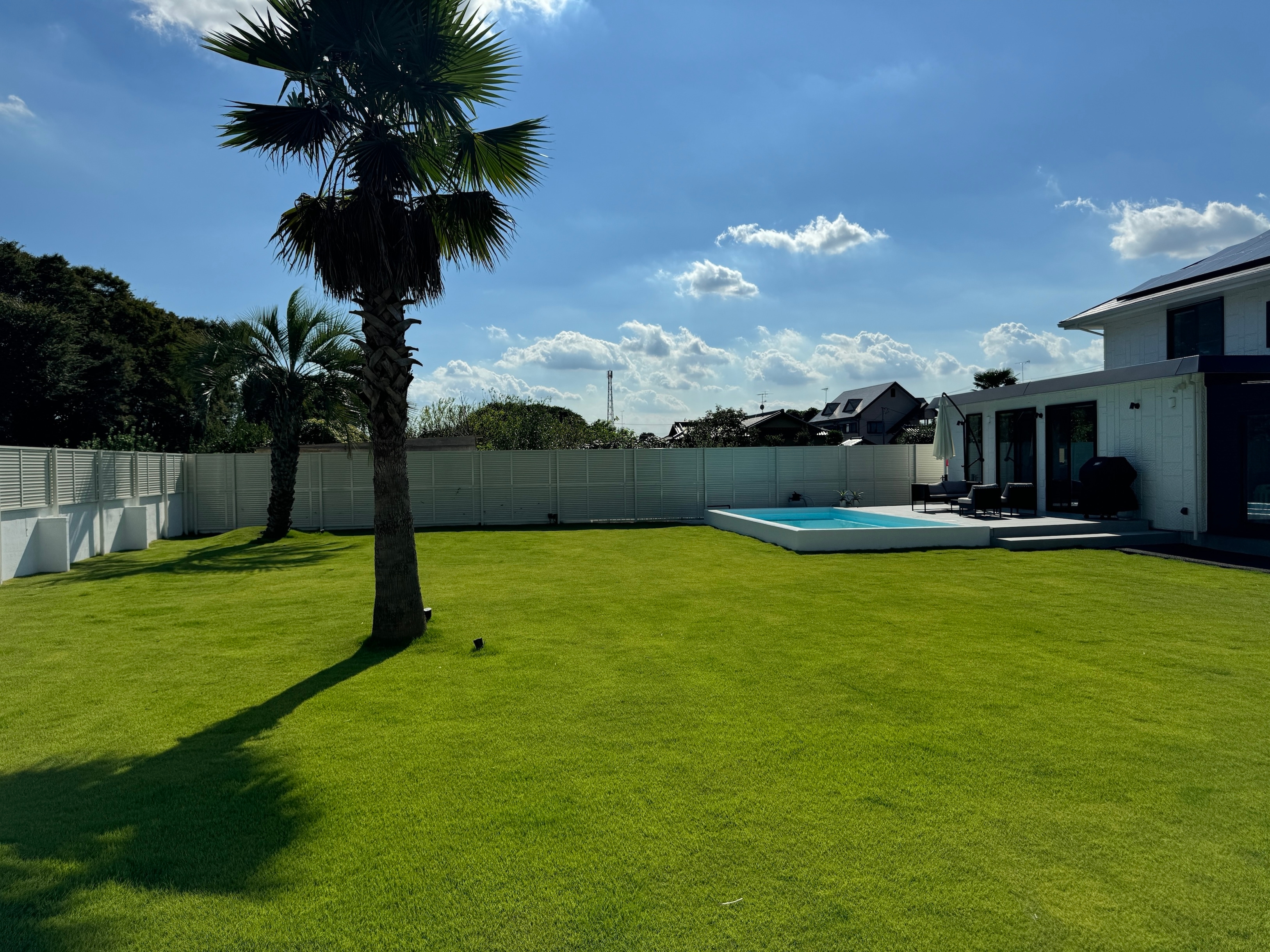 庭で遊ぶ子供やペットの安全を考慮し、芝生側から少し高さを持たせたデザインにしています。これにより、転落のリスクを減らし、安心して過ごせる環境を提供します。