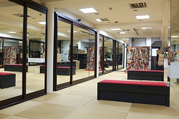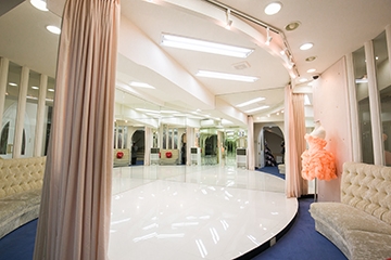 ゴーウエディングより、徒歩2分にある、自社ビル設備です。関西随一の広さと品揃えを誇っています。