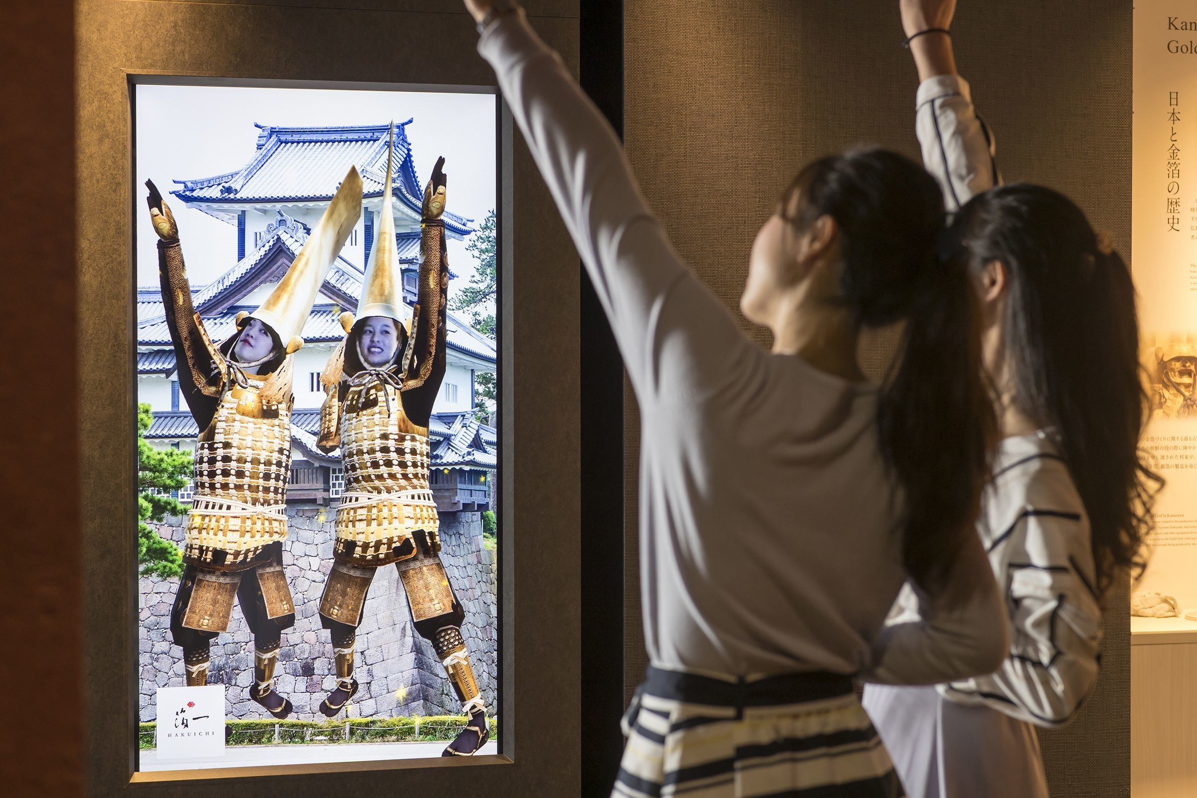 最新のデジタルアートを駆使したアトラクション目白押しの「体感型金箔総合ミュージアム」です。金箔の魅力を余すことなく体感できます。インバウンド対応の一環として、8ヶ国語(日本語、英語、中国語、韓国語、ロシア語、フランス語、スペイン語、ドイツ語)のパネルも設置しました。