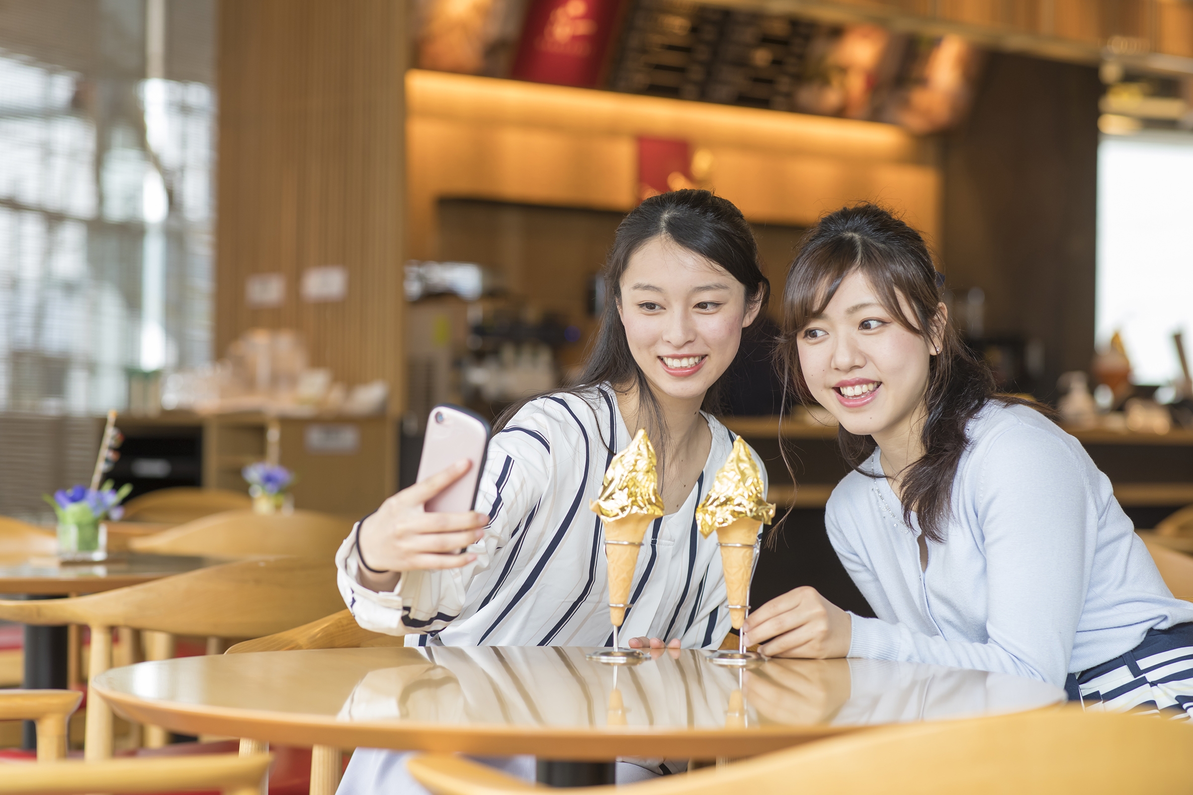 大人気の金箔のかがやきソフトクリームはこちらでお召し上がりいただけます。地元の方向けにゆったりとした時間を過ごしていただけるよう、月替わりのコーヒーも提供しています。
