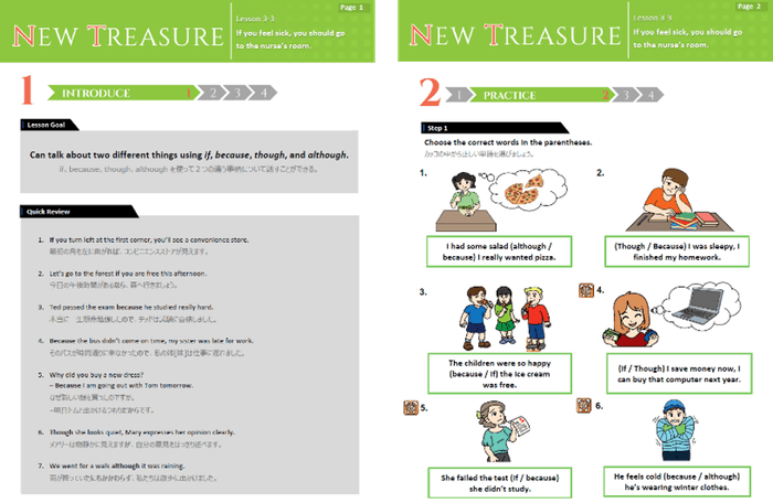 中高一貫校を中心に多く利用されている英語教科書『NEW TREASURE』に準拠したオンライン英会話専用教材をはじめ、文部科学省による学習指導要領に準拠した教材、ディスカッション教材などから好きなものを選択して学習することができます。