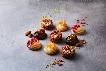 生地には北海道バターを贅沢に使用し、フルーツやナッツ類をトッピングしました。見ているだけでもワクワクする4種のひと口サイズのデコレーションクッキーです。