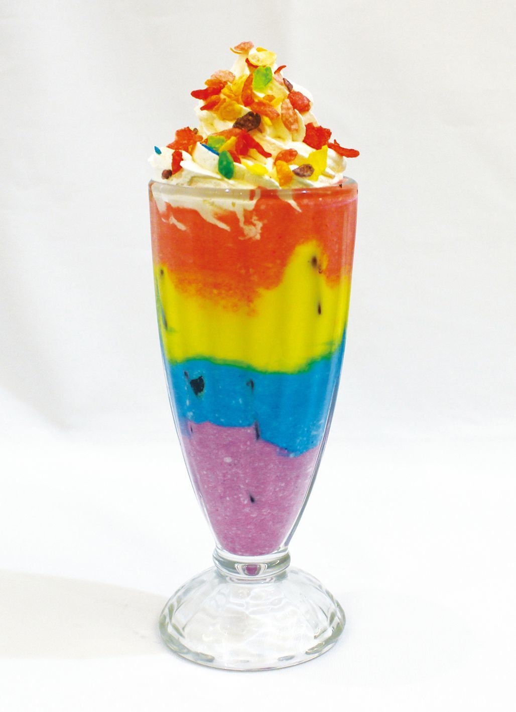 「色彩の暴力」をコンセプトに前回の「ハラカフェ」を凌ぐカラフルなメニューを多数ご用意いたしております。コラボメニューをご注文いただいた方にはノベルティのトレーディングカードやクリアファイルをプレゼント。