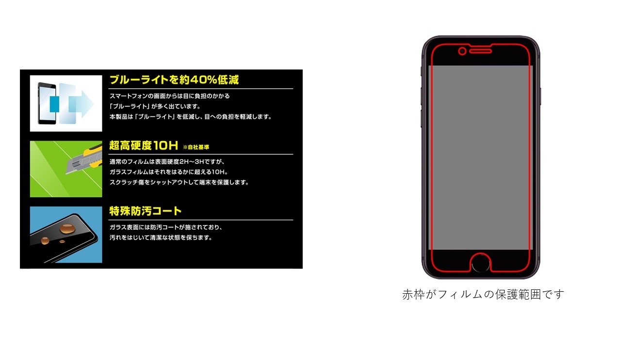セットでお届けするガラスフィルムはブルーライトを40%カットします。