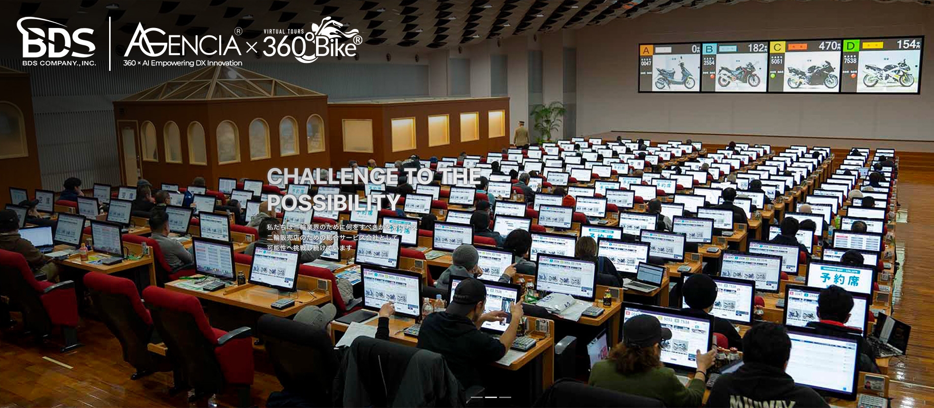株式会社AGENCIA(本社:愛知県名古屋市東区、代表取締役CEO:ジャン ピエール、以下「AGENCIA」)は、株式会社ビーディーエス(本社:千葉県柏市、代表取締役CEO:徳山 勇秀、以下「BDS」)が運営する日本最大級の中古バイクオークションにおいて、当社が開発・提供する特許取得済SaaS型360度画像ソリューション「360°Bike(R)」が正式導入されたことをお知らせいたします。