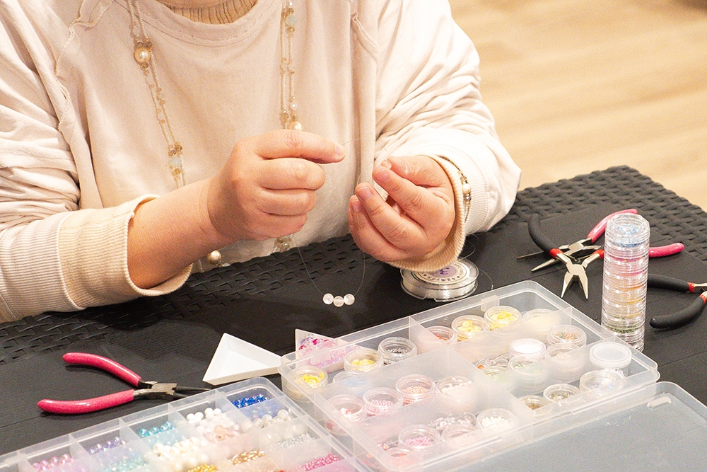 クリエイターの職員と共に、アクセサリーや雑貨、コスプレ衣装の製作などを通じて、達成感や自信を育み、社会参加や自立支援を促進します。