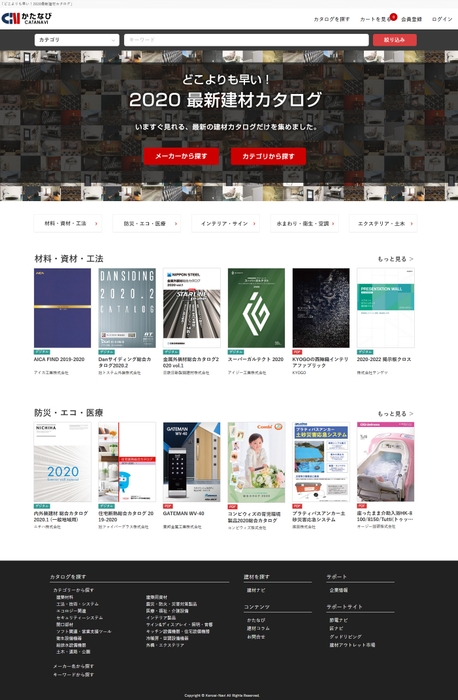 「かたなび」は、建築建材メーカーのカタログをホームページ上で一挙に閲覧および取り寄せできる専用サイトとして、2019年12月11日にリニューアルオープン。当時は、380社だったメーカー数が、2020年3月時点で435社に増加。カタログ数も2,200冊以上に上っております。