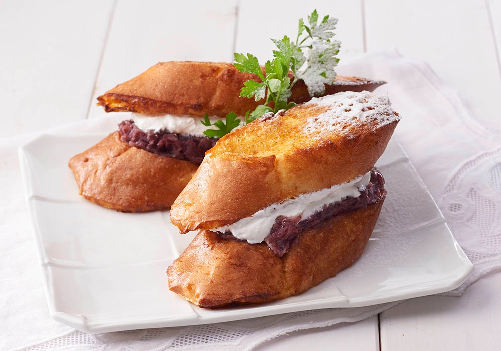 自社工場「柿安スイーツファクトリー」で製造した北海道十勝産小豆を使用した餡をフレンチバケットでサンドした和洋折衷のデザートパン。