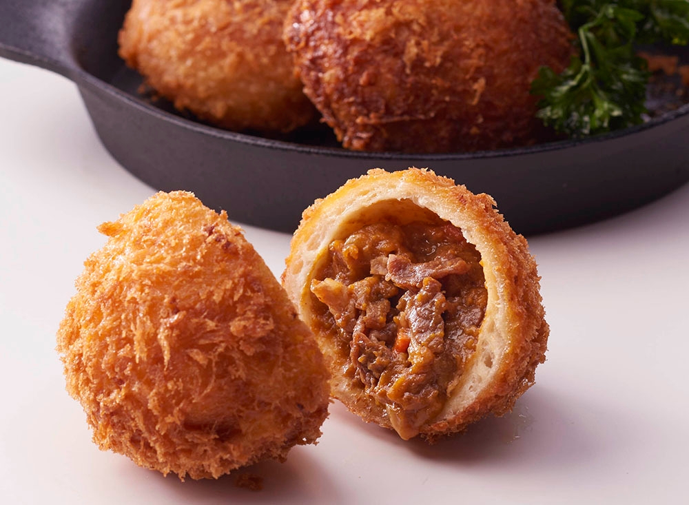 目玉商品の一つ。コクのあるカレールーに、たっぷりのタレで牛肉を炊いた看板商品「牛肉しぐれ煮」を入れた食べ応え抜群のカレーパン。