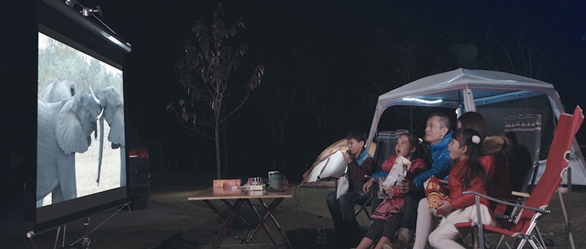 ビジネスプロジェクターがない狭いスペースでも、iPhoneやノートパソコンの画面を近くの壁に投影してスマートなミーティングができます。本体重量は超軽量 470gの持ち運びが簡単なコンパクトサイズなので邪魔にならず、簡単に移動ができ、どんなところでも商品説明やプレゼンテーションができる強力なツールとなります。また、オフタイムでは、リビングルームやアウトドアなど、設置場所を選ばずに家族や友達と大画面映像で盛り上がることができます。