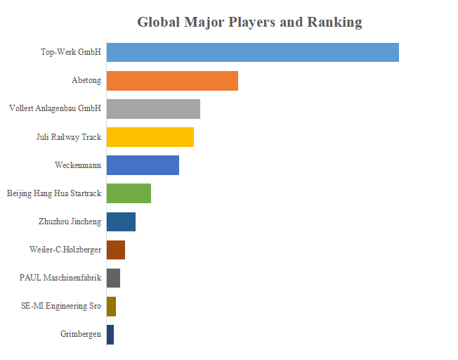 YHResearchのトップ企業研究センターによると、コンクリートまくらぎ設備の世界的な主要製造業者には、Top-Werk GmbH、Abetong、Vollert Anlagenbau GmbH、Juli Railway Track、Weckenmann、Beijing Hang Hua Startrack、Zhuzhou Jincheng、Weiler-C.Holzberger、PAUL Maschinenfabrik、SE-MI Engineering Sroなどが含まれている。2023年、世界のトップ5企業は売上の観点から約60.0%の市場シェアを持っていた。