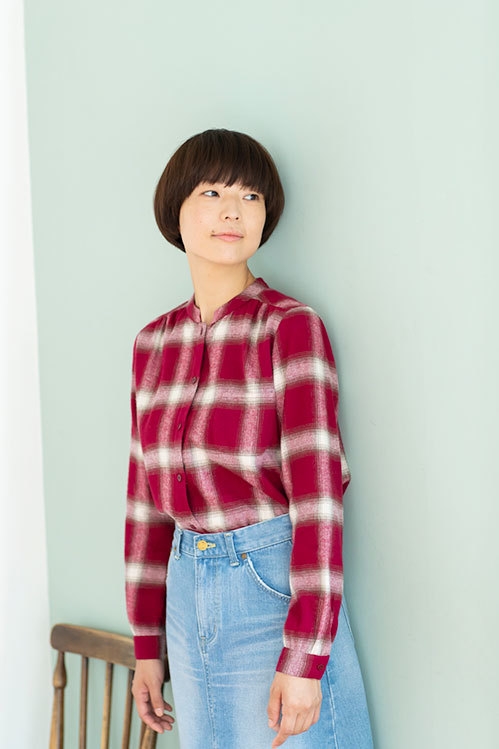 ・手織りオーガニックコットン起毛オンブレチェックトップ ¥15,000(+税)