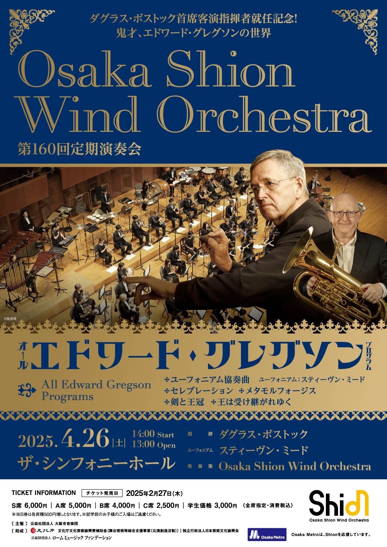 ダグラス・ボストック首席客演指揮者就任記念演奏会のプログラム全曲発表!ゲストにユーフォニアム奏者のスティーヴン・ミード氏をお迎えします。Osaka Shion Wind Orchestra「第160回定期演奏会」