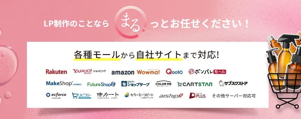 各種カート(ecforce/サブスクストア/リピスト…等)やモール(楽天市場/ヤフーショッピング/AMAZON…等)に美容、化粧品のLP反映までご対応させていただくことが可能です。