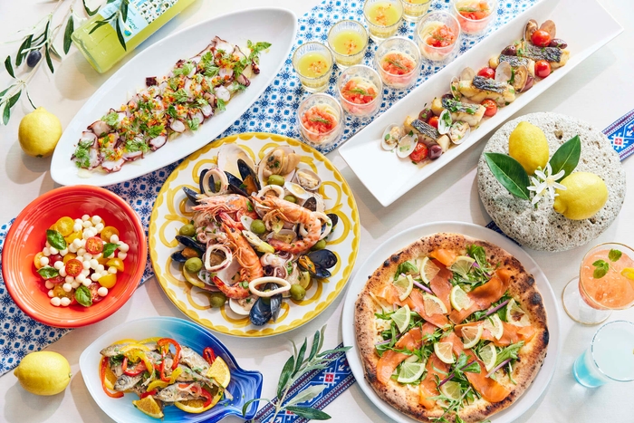 この夏、XEXでは少しでもリゾート気分を感じていただけるように人気のリゾートをテーマにした「Resort Buffet」をご提案いたします。これまで四季折々にテーマを変え、毎回大好評をいただいているストロベリーブッフェも一緒に楽しめるイタリアンブッフェ『XEX BUFFET』。XEX ATAGO GREEN HILLSでは「地中海リゾート」、XEX TOKYOでは「アジアンリゾート」、XEX日本橋では「ハワイアンリゾート」をテーマに、各地のリゾートを巡るような料理やスイーツ、爽やかな気分を感じられる期間限定のトロピカルモクテルもご用意。XEXの解放感溢れる空間で、まるで世界のリゾートを訪れているような時間をお過ごしください。