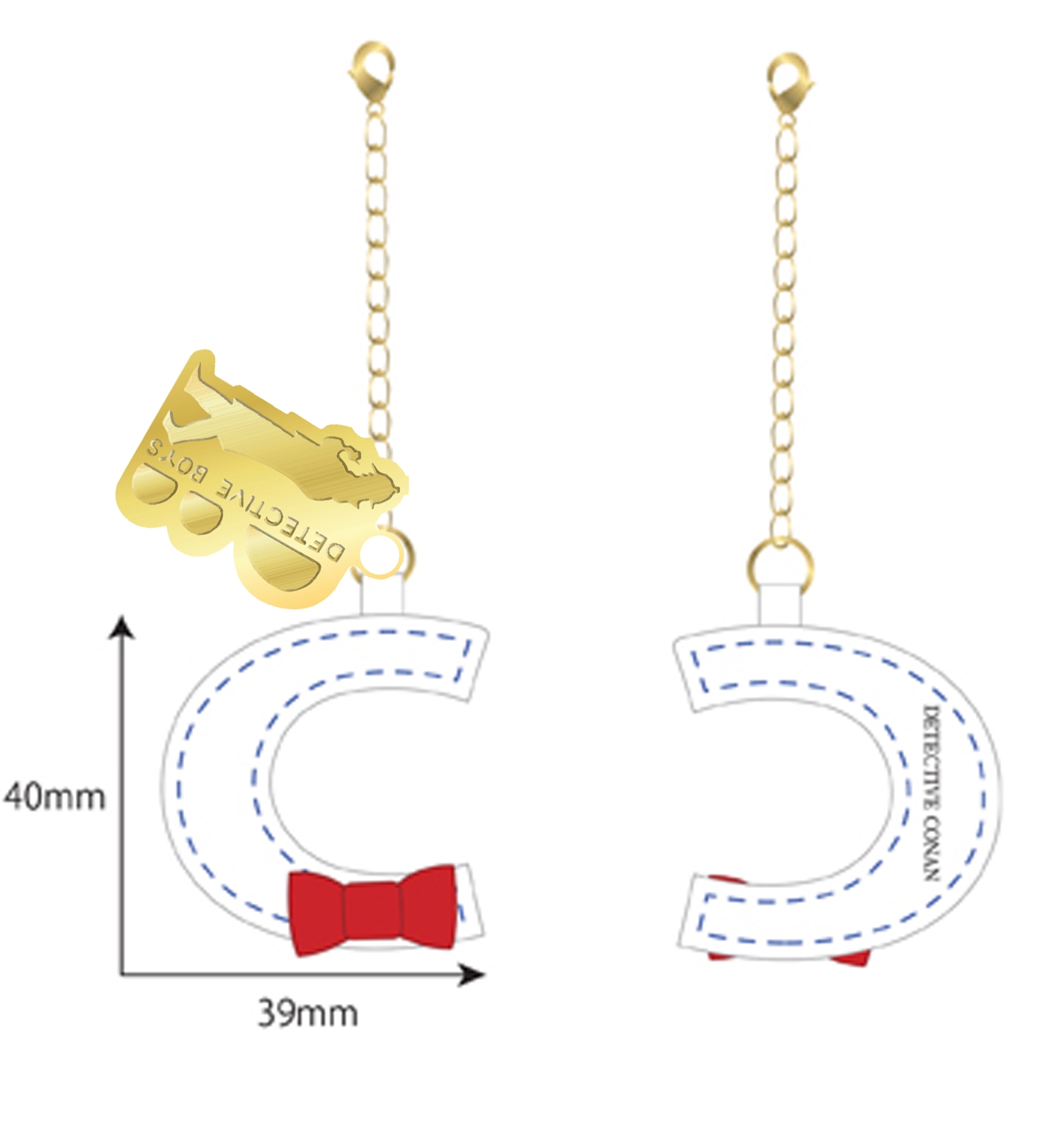 今回のポーチにも、お持ちのバッグにもつけられるイニシャルチャームも同日販売が決定。白のレザーに赤い蝶ネクタイリボンがアクセントになった、どの色にも合わせやすいイニシャルチャームです。少年探偵団の探偵バッジもついて存在感を演出。サイズは約40mm×40mm、【A・C・E・F・H・J・K・M・N・R・S・Y】の12文字となります。
