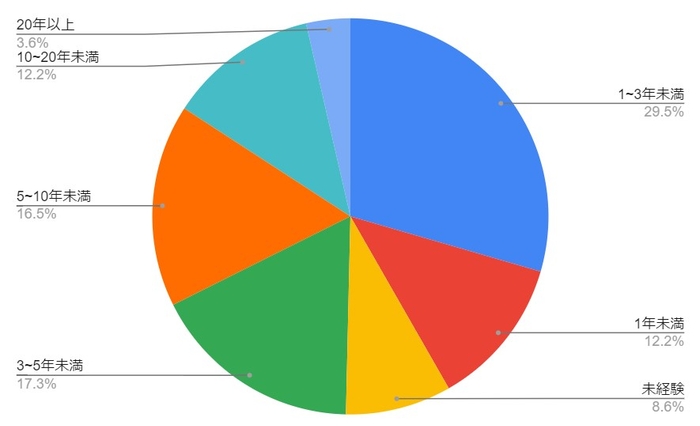 年齢は2050代の幅広い女性にお越しいただきました。ゴルフ歴は、未経験者(8.6%)と1年未満(12.2%)、13年未満(29.5%)で半数を占め、ゴルフ初心者の方を中心に、気軽にゴルフに触れていただけるイベントとなりました。