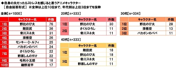 ◆夫だったらストレスを感じるアニメキャラクター 「野比のび太」がダントツ