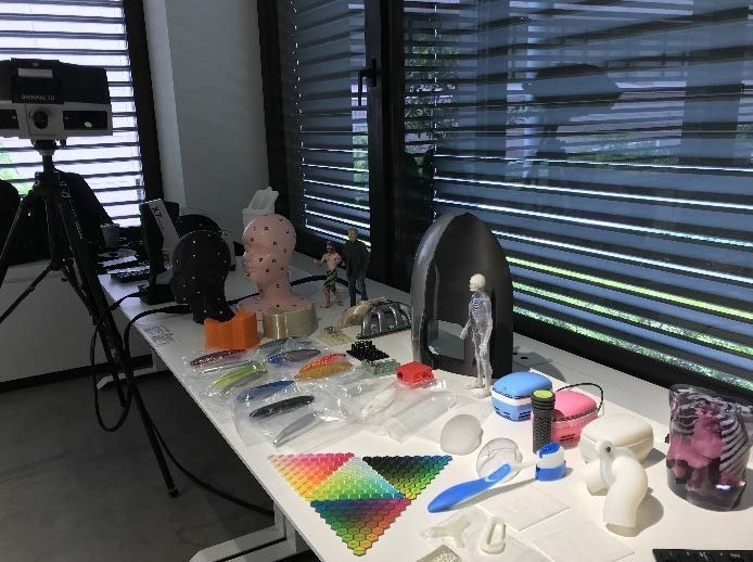 ショールームには造形サイズ1m3以上を誇るドイツ・BigRep社の大型3Dプリンター、金属レベルの強度を持つCarbon PEEK、PEEK、Carbon PAが使えるイタリア・Roboze社製3Dプリンター、中国・Shining 3D社の産業向けハイエンド3Dスキャナーシステムを展示しております。また、欧州メーカーの皮膚水分測定装置や皮膚用・工業用3次元測定器等の最新機器も常時展示しております。