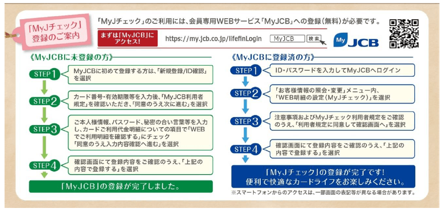 ・MyJチェックのご利用には、会員専用WEBサービス「MyJCB」へのご登録(無料)が必要です。