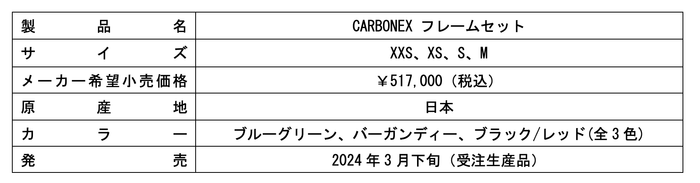 ヨネックス株式会社(代表取締役社長:アリサ ヨネヤマ)は、長年愛されてきたCARBONEXを進化させ、軽量性と巡行性が向上したカーボンバイクフレーム「CARBONEX (カーボネックス)」を2024年3月下旬より発売いたします。