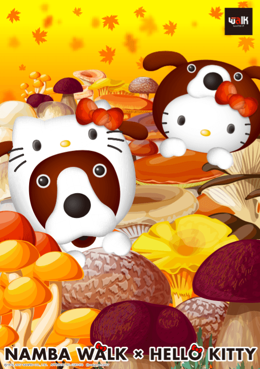9月1日からは、なんばワンとハローキティが秋の味覚のきのこに埋もれた可愛いビジュアルが館内を飾っています。