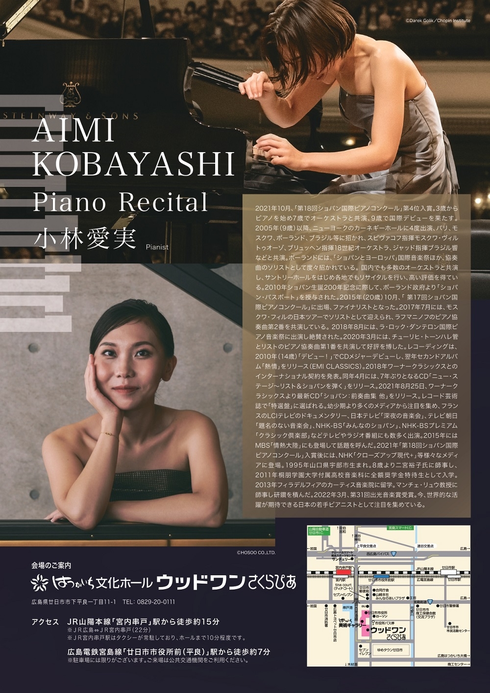 【2021年ショパン国際ピアノコンクール4位入賞】 世界が注目する“小林愛実 ピアノ・リサイタル”廿日市公演開催決定!