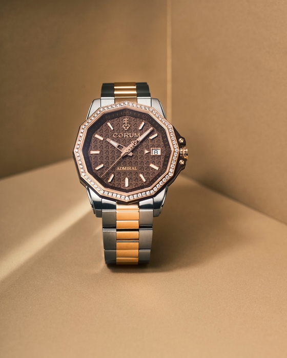 スイス高級時計ブランド CORUM(コルム)が、『アドミラル 38 オートマティック』を、5月9日(木)に全国の正規販売店で発売します。グレード5チタン・5N18Kローズゴールドのコンビネーションと、円熟した色気を感じさせるブラウンのエンボスダイアルが特徴です。